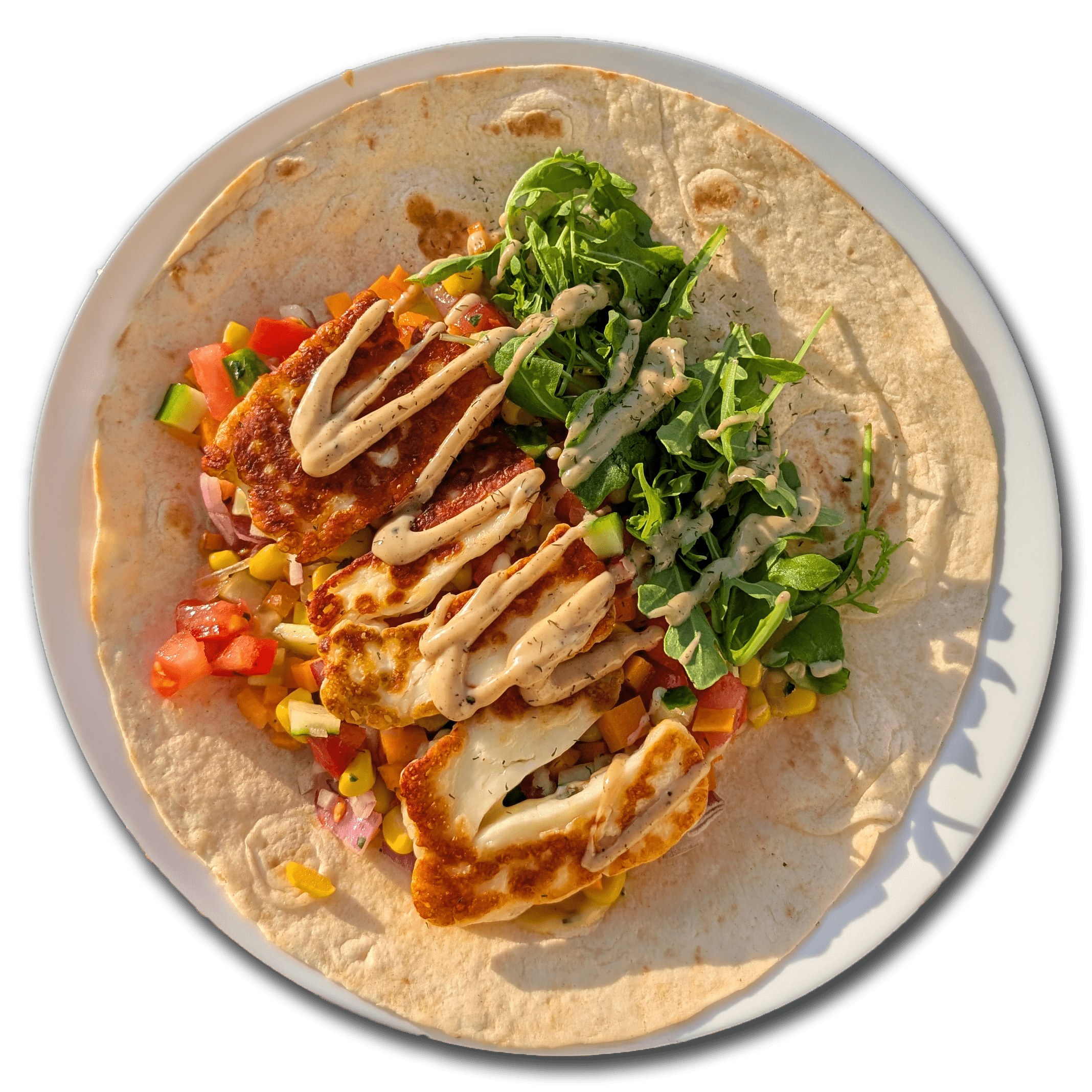 Halloumi wraps with vibrant salad and spicy, savoury sauces - this quick to make dish has it all! Wraps are a great and healthy mid-week meal. Explore our flexible base recipe, tips for buying halloumi, and ideas to level up your halloumi wraps!